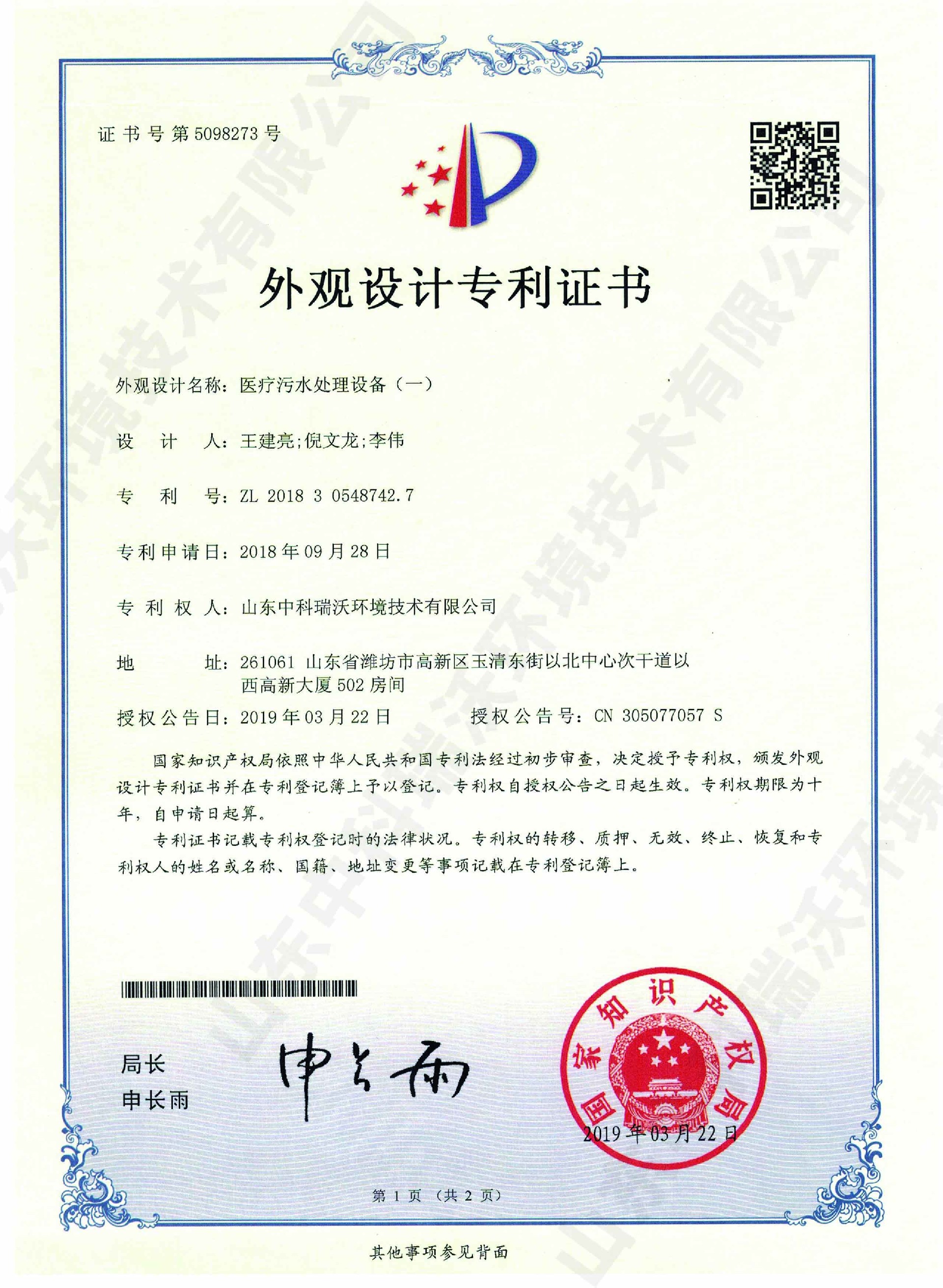 實驗室污水處理設(shè)備~外觀專利